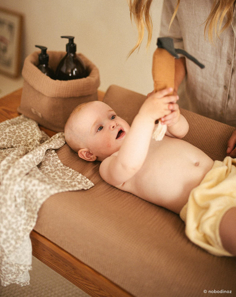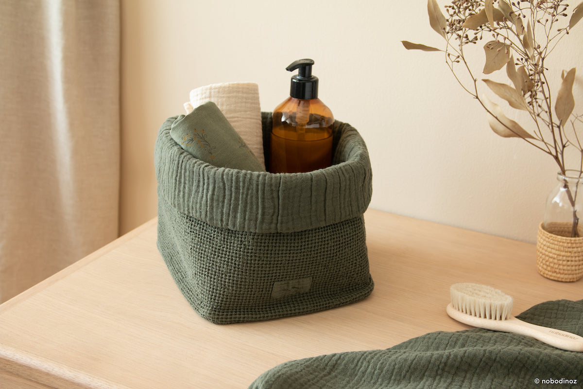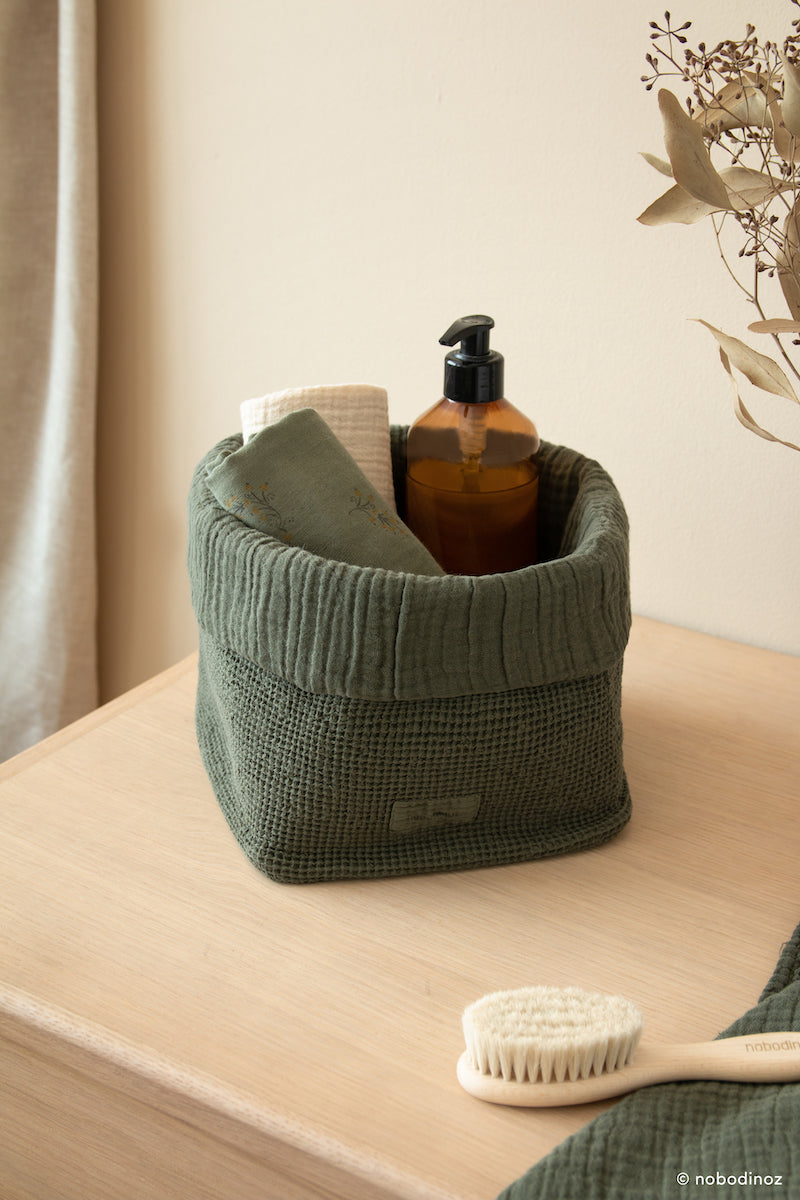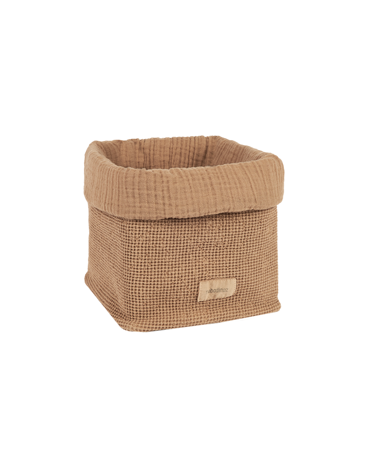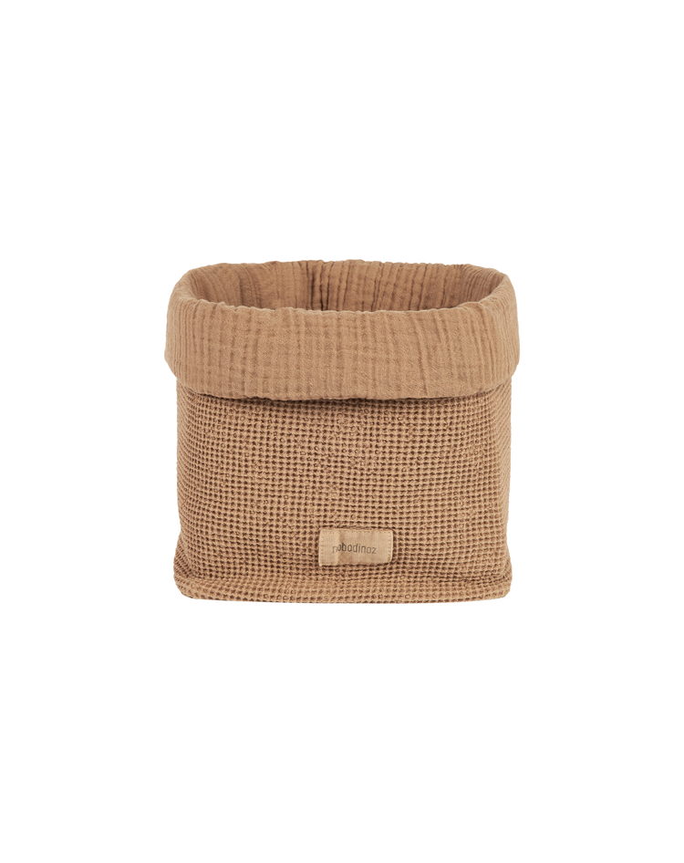 The Wabi-Sabi basket combines the elegance of honeycomb with the softness of the organic cotton double muslin. Ideal for storing small toys or accessories for baby's diaper change, it is the practical decorative element that is always needed.