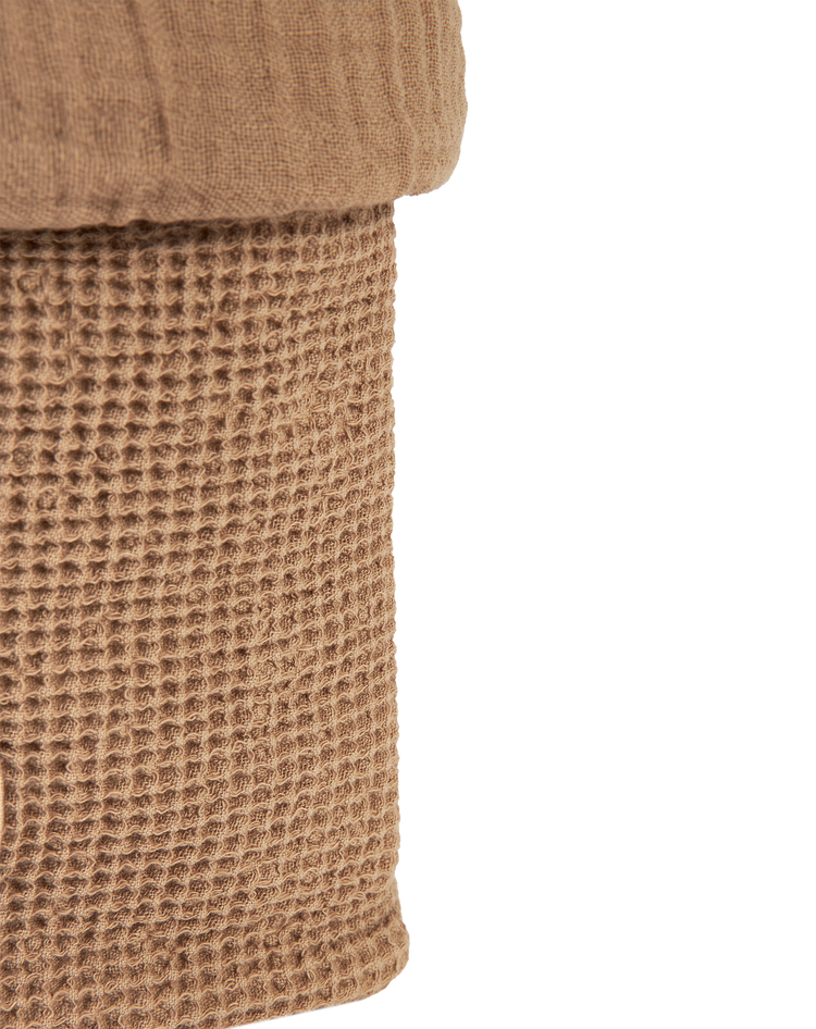 • Double texture: the elegance of the honeycomb combined with the softness of the organic cotton double muslin.