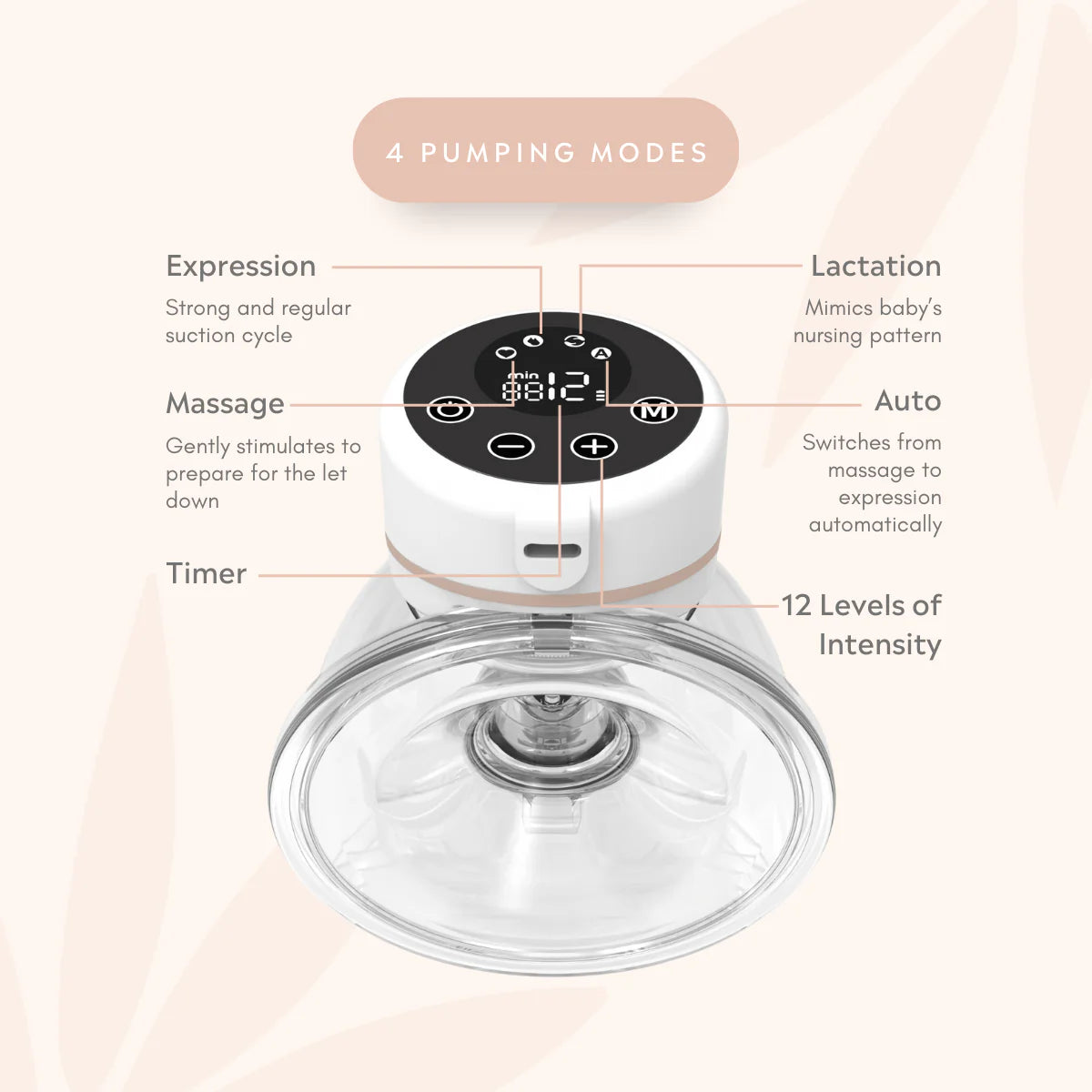4 Pumping Modes: Massage/Expression/Lactation/Auto